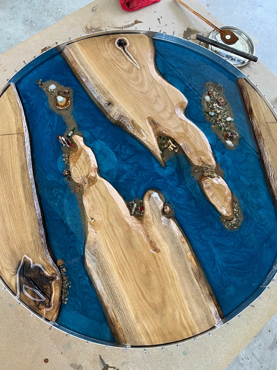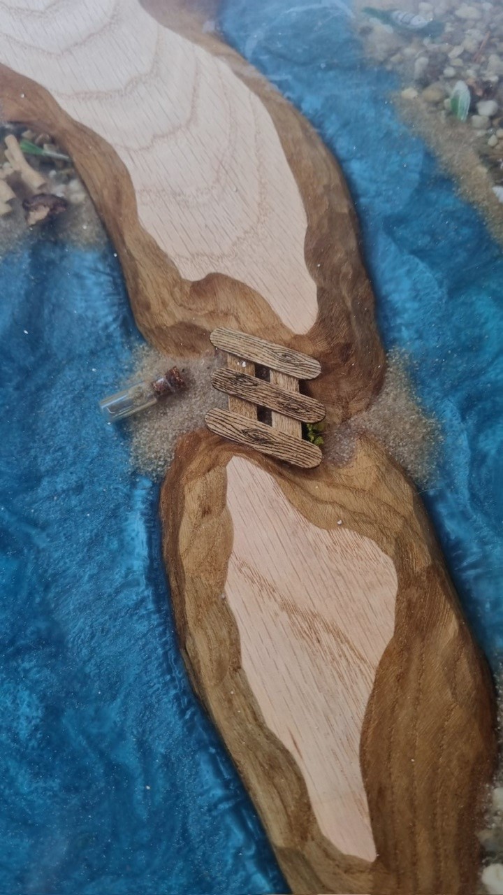 DELI BARSKA MIZA Z VRATCI IN PLOŠČO - UPODOBITEV MORJA IZ EPOKSIJA