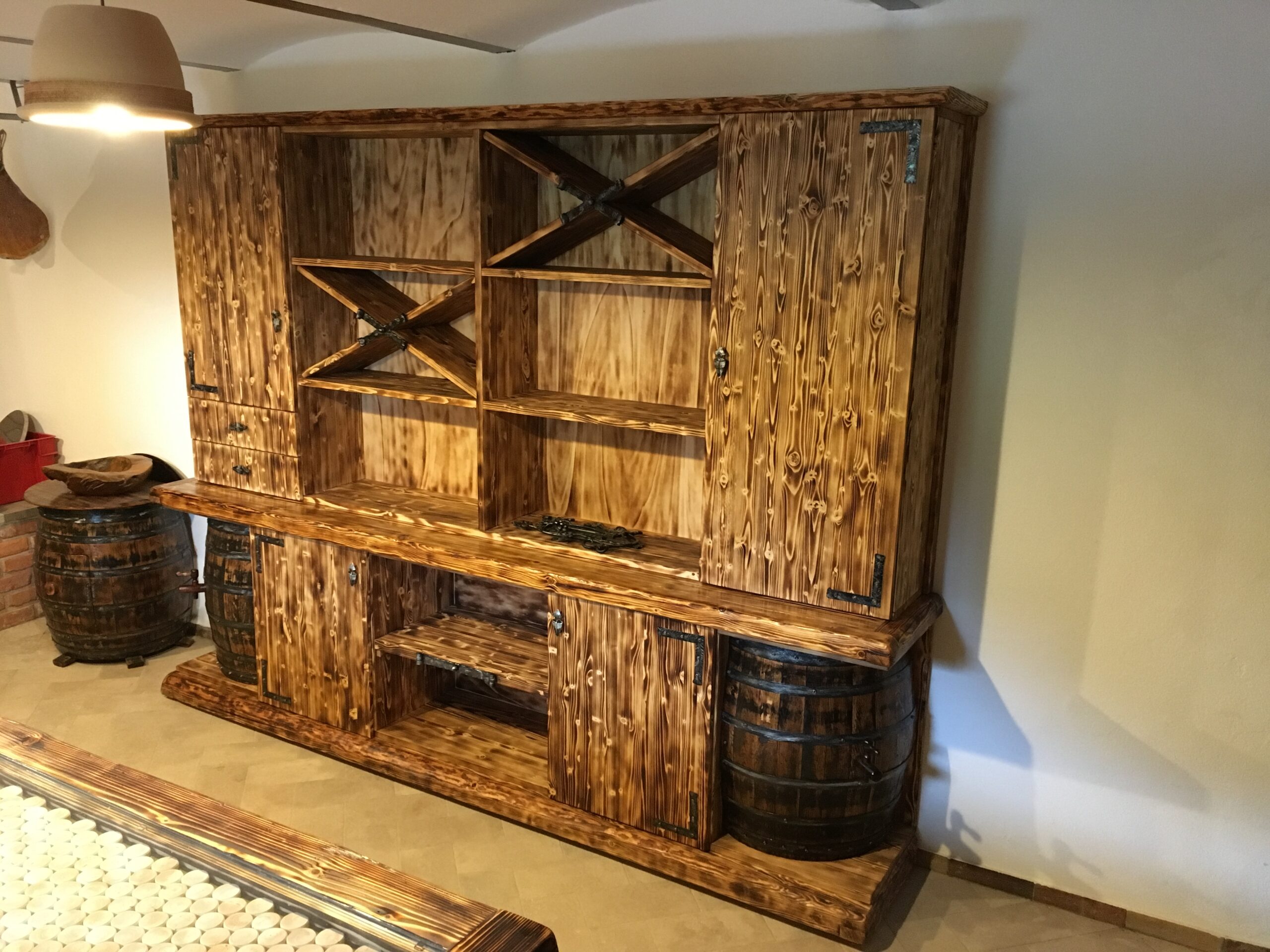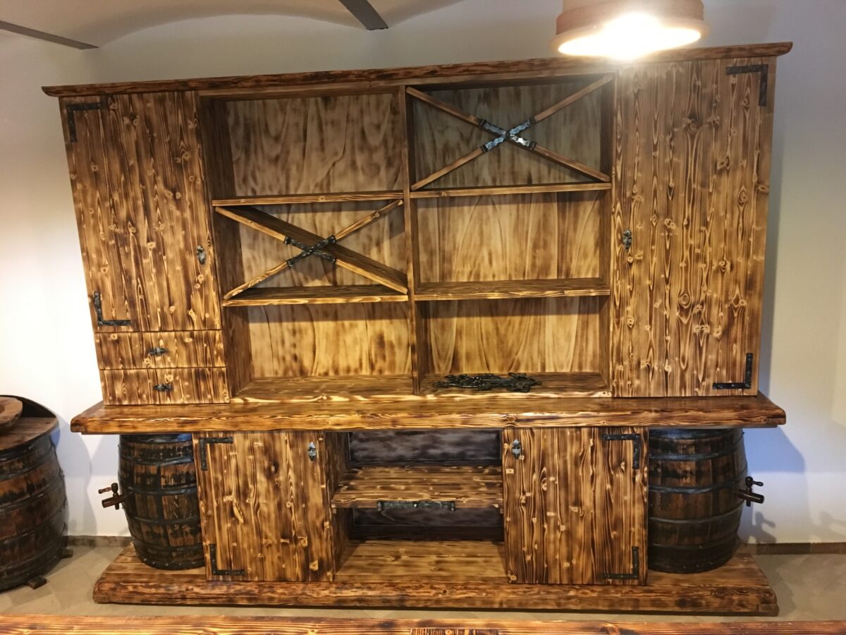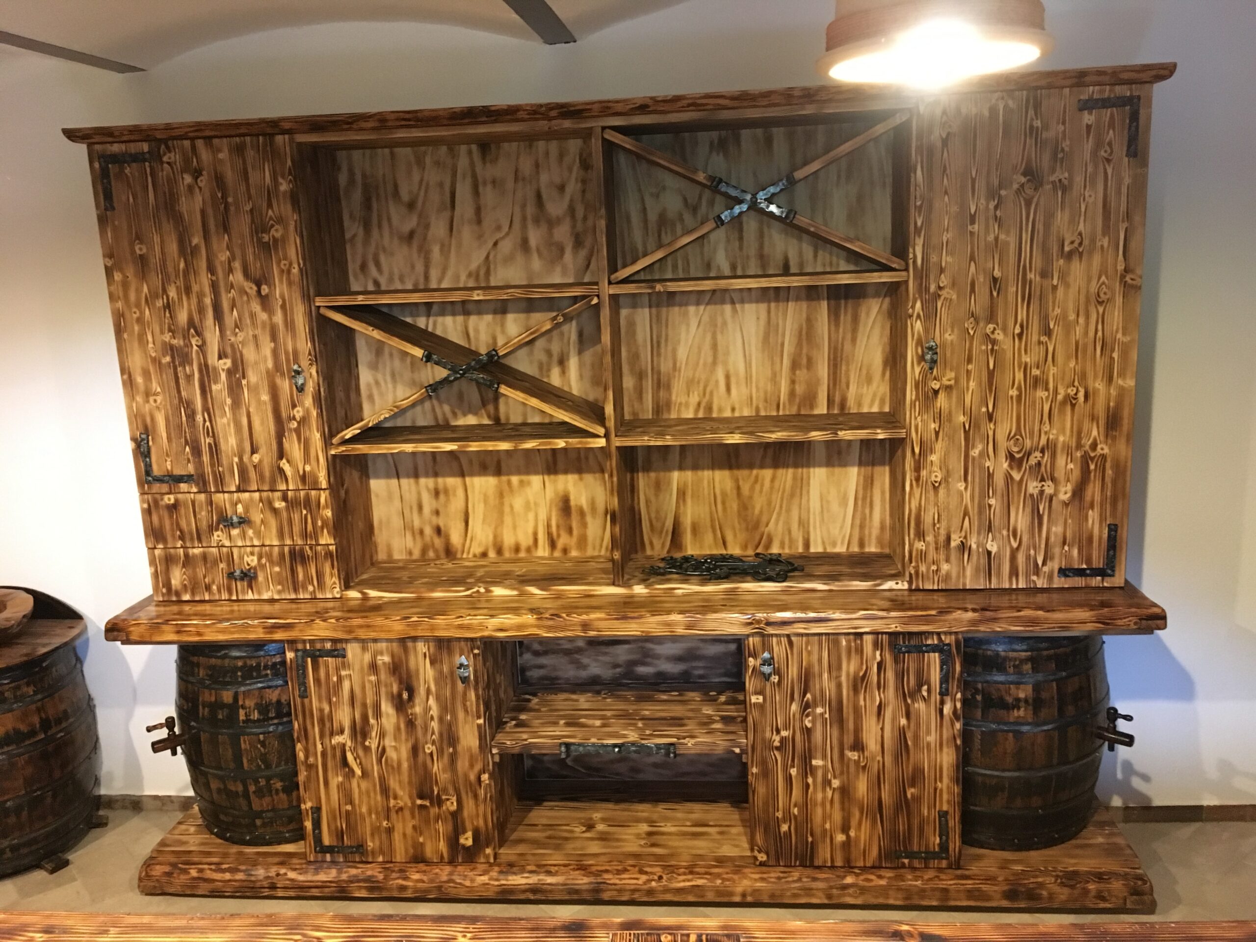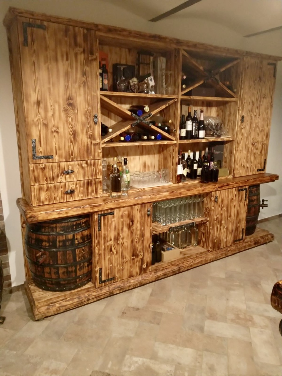 Omara/vitrina narejena iz hrastovih sodov in smrekovega lesa. Primerna za kleti kot tudi dnevne sobe.